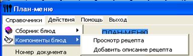 Рис. 2.9 Пункт меню «Справочники->Сборник блюд»