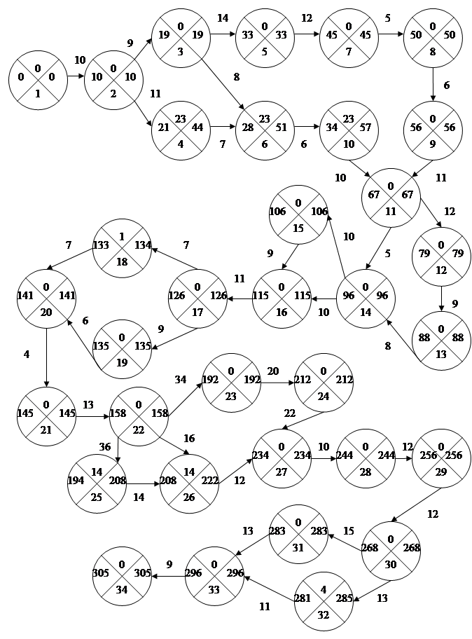 4 Расчет и построение сетевого плана-графика выполнения разработки программного продукта