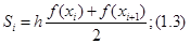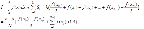 Обчислення визначеного інлдюжегтеграла зводиться до знаходження суми площ Si прямокутних прапецій (рисю1.3, рис.1.4.) N.