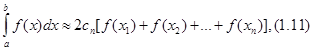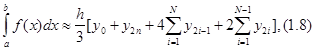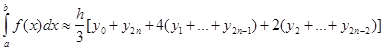 Цей метод близький до методу трапецій у тій частині, що інтегрування проводиться шляхом поділу відрізка інтегрування[а,в] на множину відрізкіав(N пар відрізків). Однак, з метою збільшення точності наближеного інтегрування на кожному відрізку