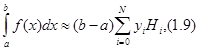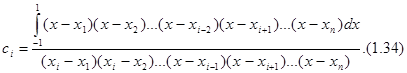Де Hi – коефіцієнти Ньютона-Котеса. Ці коефіцієнти не залежать від вигляду f(x) , а є функцією тільки N (кількість вузлів інтерполяції). Таким чином, коефіцієнти Ньютона-Котеса можна обчислити раніше для різного числа вузлів та звести в таблицю1.1.