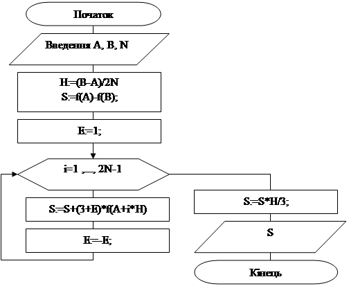 1.3.3 Метод Сімпсона (метод парабол або криволінійних трапецій)