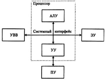 В современных ЭВМ АЛУ и УУ объединены в общее устройство, называемое центральным процессором. Обобщенная логическая структура ЭВМ представлена на рис.