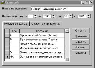 Возможность импорта данных исходных и аналитических таблиц в редактируемый сценарий позволяет избавиться от рутинной работы и использовать при конструировании собственных сценариев ввода и обработки финансовых данных ранее созданные.