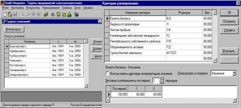 Оценка надежности контрагентов потребуется при предоставлении товарного кредита, при заключении контрактов с предоплатой и в других случаях. Проведение подобного анализа на основании отчетности ваших поставщиков и покупателей обеспечивают все встроенные в систему методики, а также специальное приложение к профессиональной версии – Audit Integrator. С его помощью удобно выбирать из группы контрагентов те предприятия, финансовые показатели которых удовлетворяют выбранным вами критериям.
