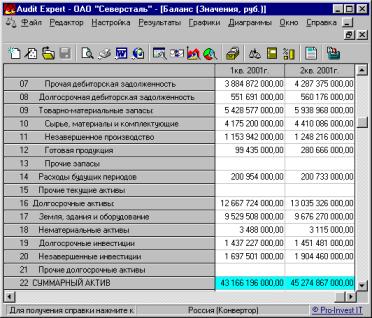 В систему Audit Expert заложена возможность представления финансовых отчетов в двух валютах. Это позволяет отображать отчетность в твердой валюте, в наименьшей степени подверженной процессам инфляции.