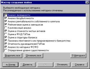 При работе со встроенными в Audit Expert методиками достаточно выбрать необходимую вам методику и ввести исходные данные Баланса и Отчета о прибылях и убытках. Вы автоматически получаете при расчете: