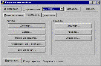 в) Повторно произведем расчет, перейдем на вкладку «Результаты» и ознакомимся с результатами расчета – Отчетом о прибылях и убытках, Кэш-Фло и Балансом.