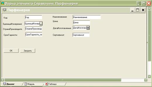 Форма элемента, форма списка и форма группы справочника «Парфюмерия» представлена в Приложении А .