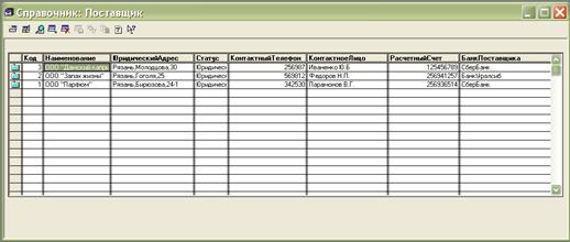 3.2 Справочник «Поставщик» справочник поставщиков фирмы, собственный: