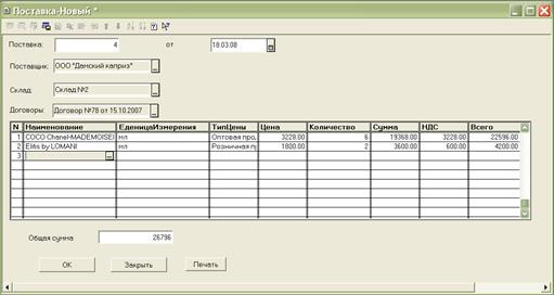 | Поставка | Поступил товар | 5 «Парфюмерия» | 6 «Поставщики» |