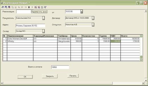 Заполненные экранная и печатная формы документа «Реализация» представлены в Приложении Р.