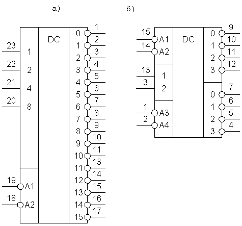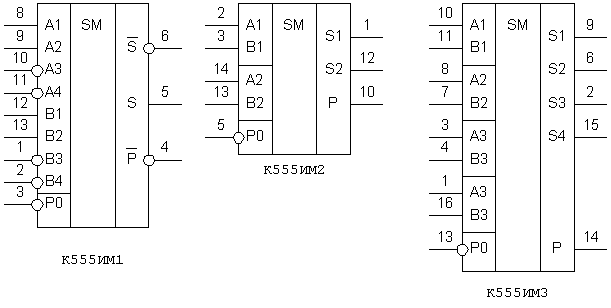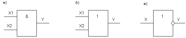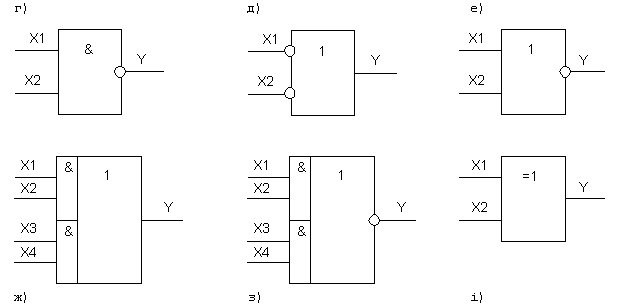 На рисунку 3 наведені приклади умовного позначення логічних елементів різних серій.