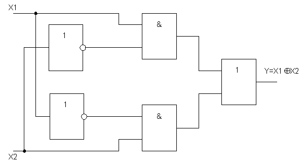 Суматор за модулем 2 можна виконати на логічних елементах І, АБО, НІ (рисунок 2).