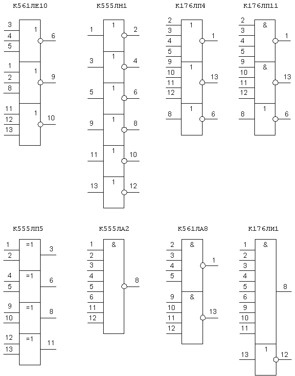 Рисунок 3 - Приклади графічного позначення логічних елементів різних серій