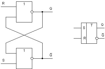 Асинхронний RS-тригер. В залежності від логічної структури розрізняють RS-тригери з прямими і інверсними входами. Їхні схеми і умовні позначення наведені на рисунку 4. Тригери такого типу побудовані на двох логічних елементах: 2АБО-НІ - тригер з прямими входами (рисунок 4, а), 2І-НІ - тригер з інверсними входами (рисунок 4, б). Вихід кожного з елементів під'єднаний до одного з входів іншого елемента, що забезпечує тригеру два стійких стани. Наведена таблиця 1.1 істинності для кожного з цих тригерів.