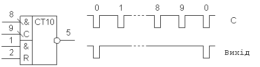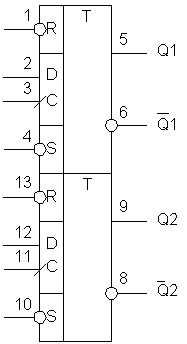 - інверсний вихід тригера; - S - роздільний вхід установки в одиничний стан (напруга високого рівня на прямому виході Q);