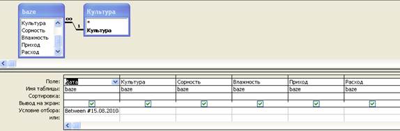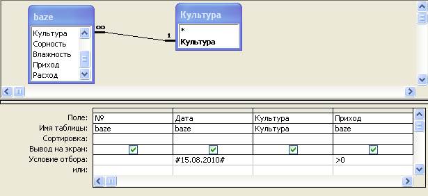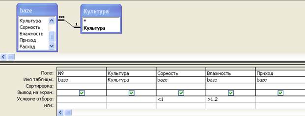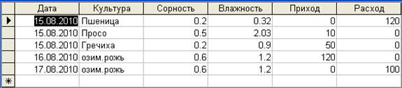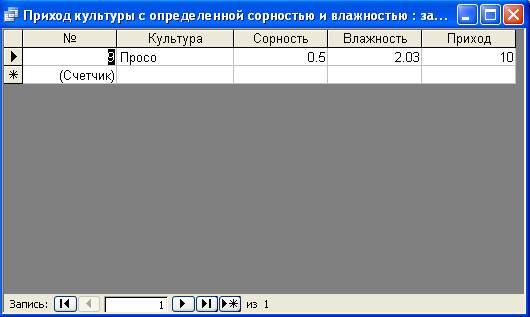 Запрос3: Приход культуры с определенной сорностью и влажностью: