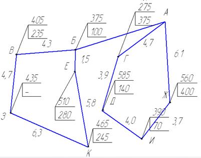 Анализ маршрута 1 (пункты А, Б, В, З, К, Е):