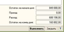 Движения и остатки на банковских счетах отображаются в соответствующих полях «Остаток на начало дня », «Приход », «Расход » и «Остаток на конец дня ».