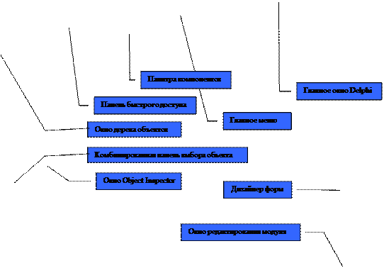 В интегрированную среду разработки Delphi входит несколько основных элементов.