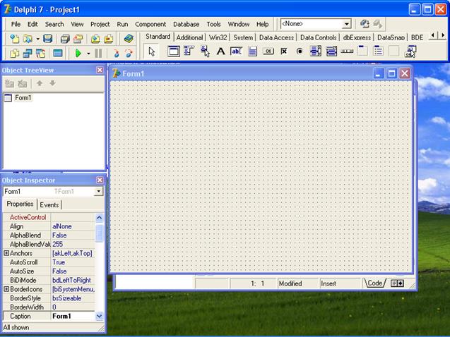 Свойство Name . В Delphi для каждого объекта имеется свойство Name. Когда компонент помещается в форму, Delphi автоматически присваивает ему уникальное имя. Наш компонент форма имеет имя Form1.