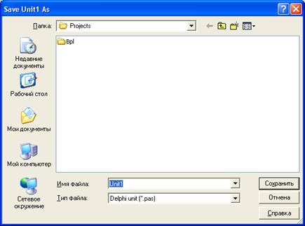 При запуске Delphi автоматически создает новое приложение, с которым Вы можете начать программирование новой задачи. Для удобства работы файлы каждого создаваемого проекта лучше хранить в отдельной папке.