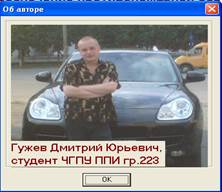 При выборе пункта «Об авторе» (в меню главной формы в разделе «Справка») появляется информация об авторе программы |