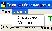 На основной форме расположен компонент PageControl, с помощью которого обучающая информация разделена на разделы. На основной форме так же располагается кнопка «Далее» для переключения обучающих разделов. Для удобства пользователя на основной форме размещено меню.