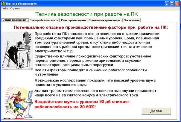 2. Разработка обучающей программы по технике безопасности при работе на ПК.