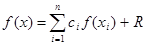 де х i - вузли, с i – ваги, R – залишковий член. Інтеграл приблизно заміняється сумою, схожою на інтегральну суму, причому вузли та коефіцієнти цієї суми не залежать від f ( x ) .