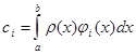 де функція f ( x ) неперервна відрізку [ a , b ] , а вагова функція r ( x ) неперервна на інтервалі ( a , b ) . Тоді f ( x ) наближають такою функцією j ( x ; C ) від якої інтеграл легко взяти в елементарних функціях. Завдяки лінійності такої апроксимації відносно параметрів ci функцію можна записати так: