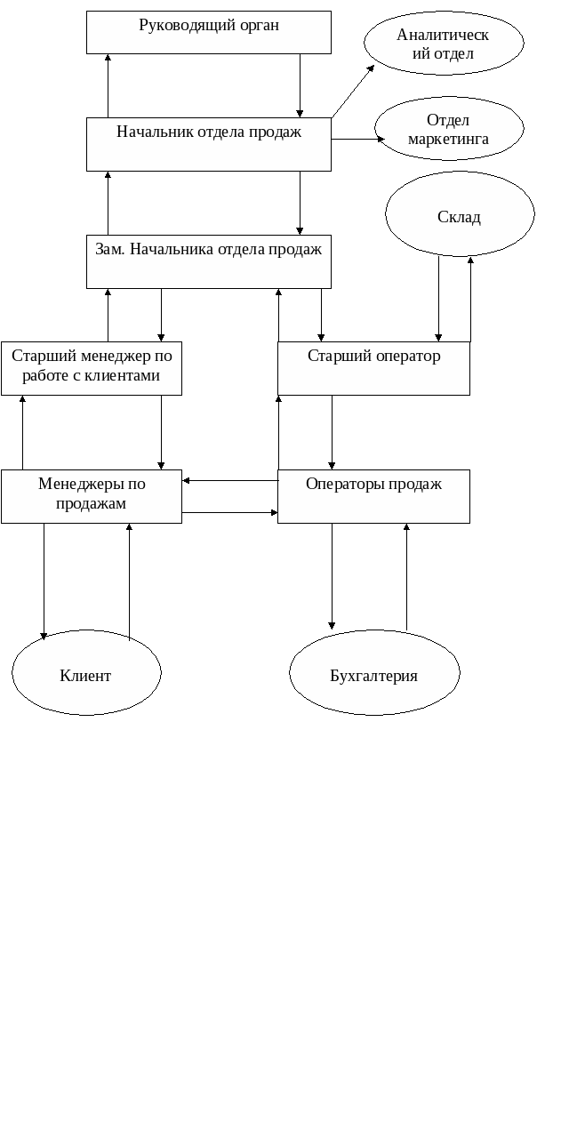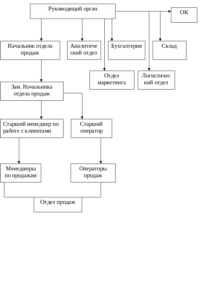 Высший руководящий орган контролирут, направляет и корректирует деятельность отдела продаж через начальника отдела продаж.