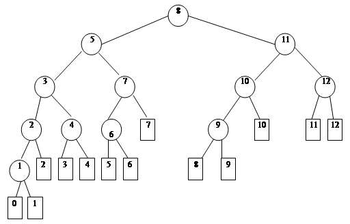 Очевидно, що ніякого іншого способу підвищення ефективності пошуку в масиві не має, якщо відсутня додаткова інформація про дані. Пошук можна значно покращити, якщо елементи в масиві попередньо будуть впорядковані. Даний метод – ділення пополам ще називають "метод дихотомії", "бінарне дерево". Бінарним деревом його називають тому, що можна схематично зообразити дерево, по якому буде проводитися пошук (Рис. 1).