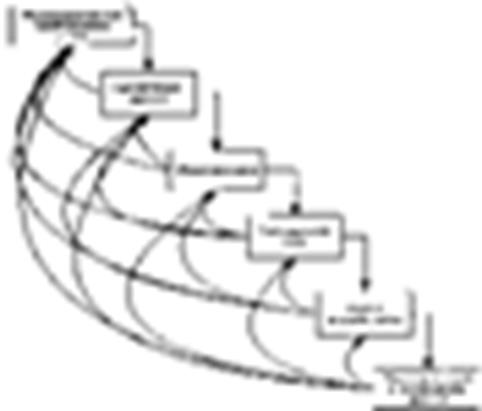 В однородных ЭИС 70-х и 80-х гг. прикладное ПО представляло собой единое целое. Для разработки такого типа ПО применялся каскадный подход (другое название - водопад (waterfall)) (рис. 1.3). Принципиальной особенностью каскадного подхода является следующее: переход на следующую стадию осуществляется только после того, как будет полностью завершена работа на текущей стадии, и возвратов на пройденные стадии не предусматривается. Каждая стадия заканчивается получением некоторых результатов, которые служат в качестве исходных данных для следующей стадии. Требования к разрабатываемому ПО, определенные на стадии формирования требований, строго документируются в виде технического задания и фиксируются на все время разработки проекта. Каждая стадия завершается выпуском полного комплекта документации, достаточной для того, чтобы разработка могла быть продолжена другой командой разработчиков. Критерием качества разработки при таком подходе является точность выполнения спецификаций технического задания.