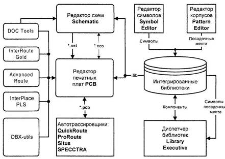 · OrcadCaptureCISOption – редактор электронных схем с доступом к информационной системе по компонентам и средствами ведения баз данных;