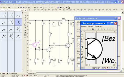 По дисциплине «Схемотехника» проектировался импульсный усилитель и источник питания. Для рисования электрической принципиальной схемы была использована программа SPlan.