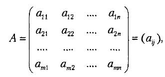 Матрицей размера m × n называется прямоугольная таблица чисел, содержащая m строк и n столбцов. Матрицы обозначаются прописными (заглавными) буквами латинского алфавита. Числа, составляющие матрицу, называются элементами матрицы и обозначаются строчными буквами с двойной индексацией: aij , где I – номер строки, а j – номер столбца. Например, матрица А размером m × n может быть представлена в виде: