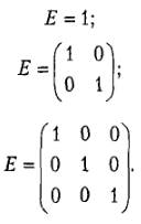 Различают единичные матрицы первого, второго, третьего и т. д. порядков: