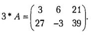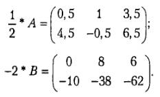 Произведением матрицы А на число k называется матрица В = kA, элементы которой bij = kaij для I = 1,2, …, m; j = 1,2, …, n. Иначе говоря, при умножении матрицы на постоянную каждый элемент этой матрицы умножается на эту постоянную: k*Aij = (k*aij ).