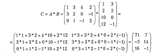 Таким образом, перемножение матриц осуществляется по следующему правилу:
