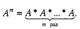 (m>1) квадратной матрицей А называется произведение m матриц, равных А, то есть: