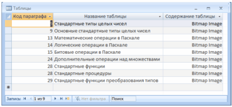 Рисунок 2.3.4 – Таблиця «Параграфы»