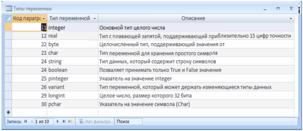 Рисунок 2.3.5 – Таблиця «Типы переменных»