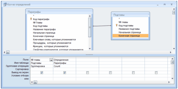 Рисунок 2.3.14 – Запит «Кол-во страниц в параграфах» у режимі Конструктора