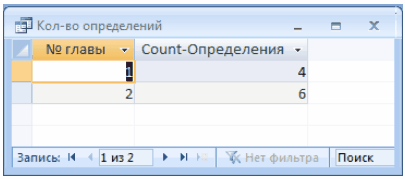 Рисунок 2.3.17 – Робота запиту «Кол-во определений»