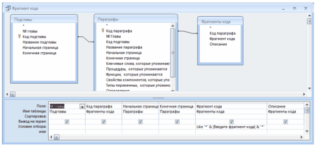 Рисунок 2.3.18 – Запит «Поиск по фрагменту кода» у режимі Конструктора