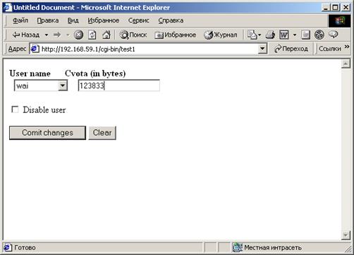 В четвертом разделе дипломной работы была разработана программа контроля доступа пользователей к банковской сети. В качестве языка программирования был выбран язык Perl, что позволило гибко управлять работой прокси-сервера. Для достижения поставленной задачи - возможности удаленного управления сервером, был разработан платформо-независимый WEB интерфейс. Таким образом, разработанное программное средство выполняет следующие функции: