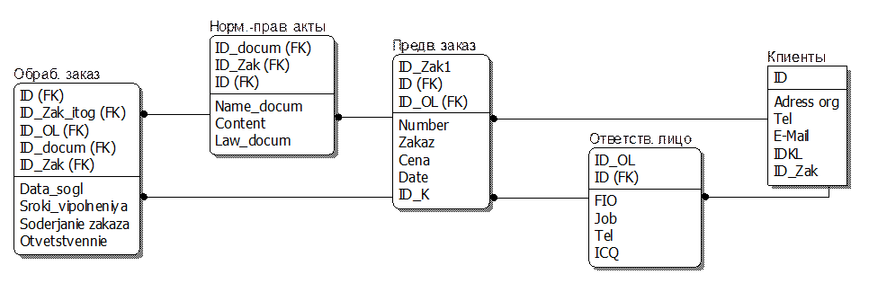Для автоматизации был выбран блок «Обработка заказа». Построена ER-диаграмма: