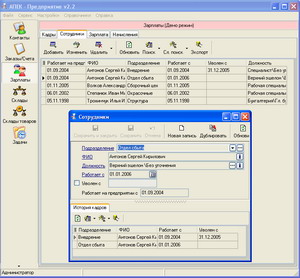 Управление кадрами . Модуль предназначен для повышения производительности труда работников отдела кадров, объема и степени интеграции предоставляемой информации. Модуль ориентирован на предприятия с полномасштабным кадровым учетом, включающим ведение личной карточки, военно-учетной информации и т.п.; на организации с нестандартными структурами, содержащими внештатных работников, совместителей, надомников, географически разветвленную сеть дилеров; на организации, хранящие подробные сведения о сотрудниках, создающие информационно-справочные системы по персоналиям. Состав хранимых данных полностью охватывает утвержденные директивными органами личную карточку и типовую анкету, формирование штатного расписание по подразделениям и получение широкого спектра отчетов по штатному расписанию, а также много другой полезной информации, включая фотографии сотрудников.
